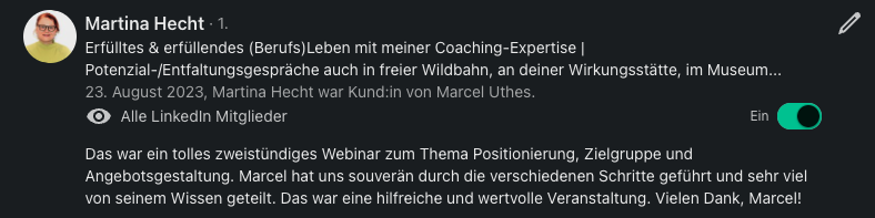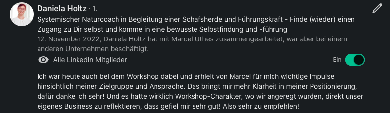 Mit der Anmeldung landest du gleichzeitig im „Business-Insider“ und bekommst gelegentlich Informationen rund ums Thema Coaching-Business. Du kannst dich natürlich jederzeit abmelden.
